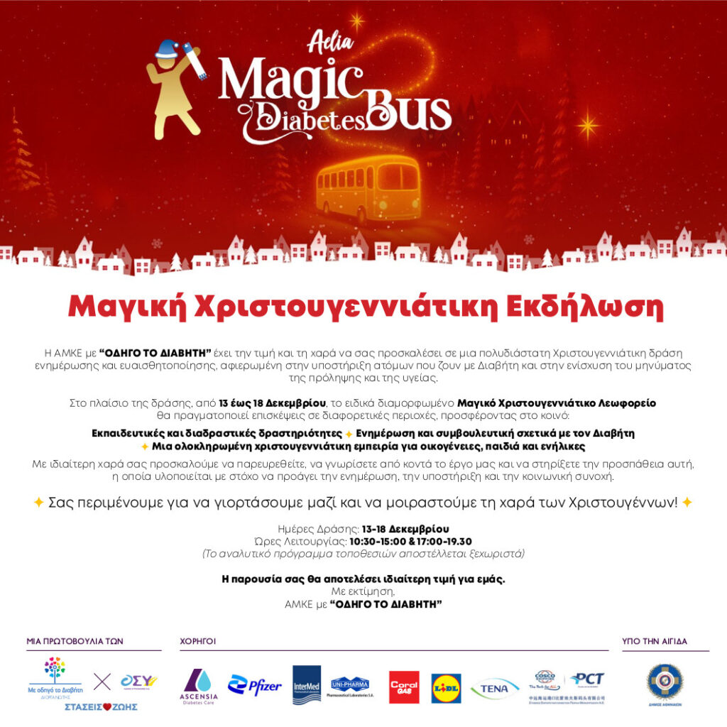 Η ΑΜΚΕ με “ΟΔΗΓΟ ΤΟ ΔΙΑΒΗΤΗ” έχει την τιμή και τη χαρά να σας προσκαλέσει σε μια πολυδιάστατη Χριστουγεννιάτικη δράση ενημέρωσης και ευαισθητοποίησης, αφιερωμένη στην υποστήριξη ατόμων που ζουν με Διαβήτη και στην ενίσχυση του μηνύματος της πρόληψης και της υγείας. Στο πλαίσιο της δράσης, από 13 έως 18 Δεκεμβρίου, το ειδικά διαμορφωμένο Μαγικό Χριστουγεννιάτικο […]