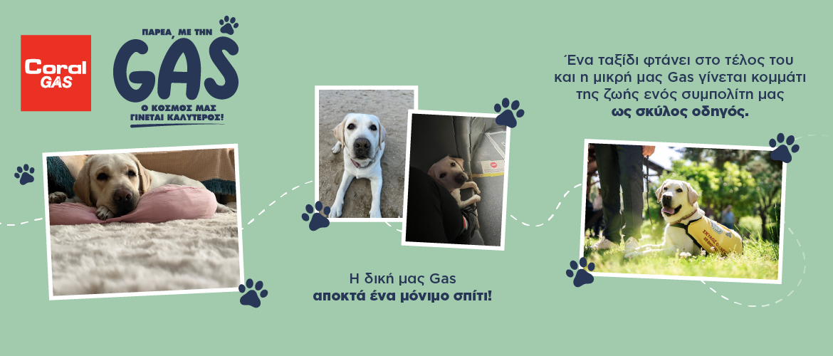 Στο πλαίσιο της εκδήλωσης, η Gas – ο σκύλος οδηγός που υιοθετήθηκε και εκπαιδεύτηκε με πρωτοβουλία της Coral Gas – ολοκληρώνει το ταξίδι της εκπαίδευσής του και περνά πλέον στη μόνιμη αναδοχή από άτομο με πρόβλημα όρασης, το οποίο θα συνοδεύει από εδώ και στο εξής ως σκύλος οδηγός.